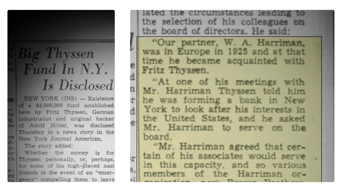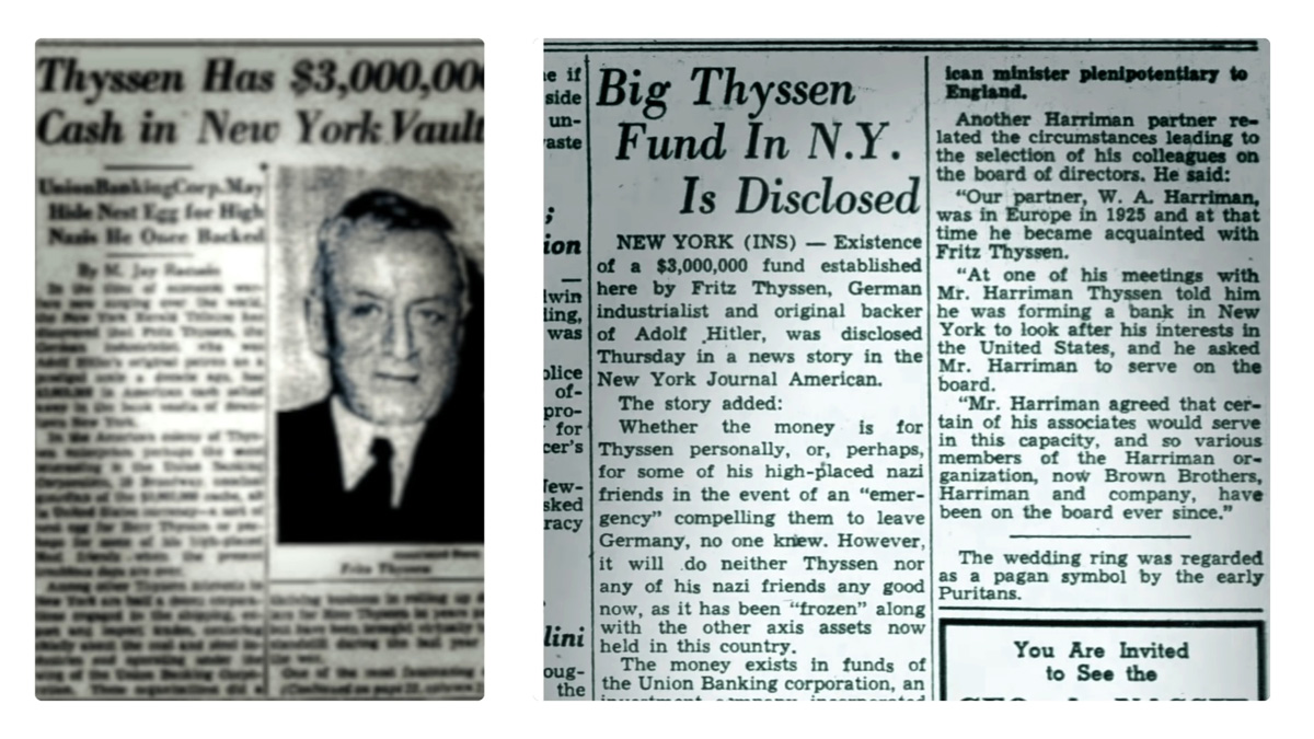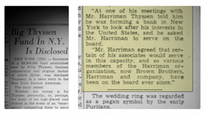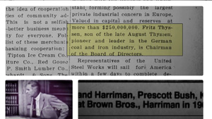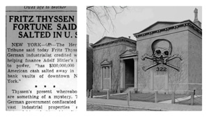 Time's December 22, 1930, issue announced that the three-way merger featured 11 Yale graduates among 16 founding partners. 8 of the partners listed above, except for Moreau Delano and Thatcher Brown, were Skull and Bones members. In 1930s the company acted as a U.S. base for the German industrialist Fritz Thyssen, who helped finance Adolf Hitler. After the passage of the Glass-Steagall Act, the partners decided to focus on commercial banking, becoming a private bank, and to spin its securities marketing and underwriting off into Harriman, Ripley and Company which eventually evolved into Drexel Burnham Lambert via mergers. Harriman, a partner in the firm, was the ambassador and statesman responsible for the relationship between Winston Churchill and Franklin Roosevelt during World War II respectively the 2nd orchestrated World War-charade. Some historical records of Brown Brothers Harriman and its precursor companies are housed in the manuscript collections at the New-York Historical Society. Außer- gewöhnlich, bemerkenswert, verstörend, demaskierend und unter sehr sehr vielem anderen raschestmöglichst kompromiß- und restlos aufklärungsbedürftig ! ▼♄▼ Vom Illuminatismus und der elendigen Geheimbündelei in unserer verlogen heuchlerischen Welt der Menschen ... ▼♄▼