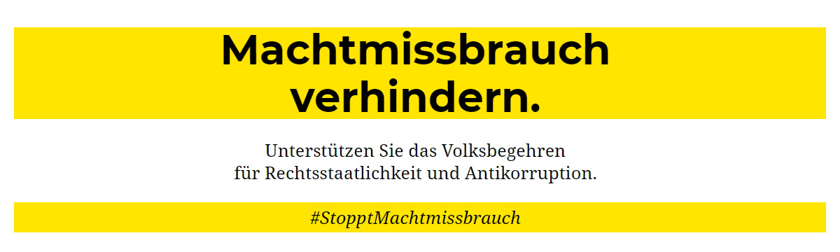 ![]() Wir fordern daher von allen politischen Parteien: Die Bundesregierung möge mit Dringlichkeit vorschlagen und das Parlament möge mit Dringlichkeit alle nötigen Verfassungsgesetze, einfachen Gesetze, Regularien, Kodizes, Selbstverpflichtungen und sonstigen Vereinbarungen, inklusive ihrer allfälligen budgetären Bedeckung, beschließen und umsetzen, die (zumindest) die vorher genannten 5 Themenbereiche abdecken! Österreich hat seit Jahrzehnten ein unübersehbares und strukturelles Problem mit Korruption. Unser Land läuft damit zunehmend Gefahr zu einem rechtsstaatlichen Außenseiter Europas zu werden. Das hat tiefer liegende Ursachen. Postenschacher, Freunderlwirtschaft und Ämterpatronage, Druck auf Kontrollorgane wie Justiz und Medien, Gesetzeskauf, intransparente Parteienfinanzierung, Mißwirtschaft, Beschaffungs-, Privatisierungs- und Bankenskandale: all das kostet uns jährlich Milliarden Euro an Steuergeld. Korruption unterwandert unsere Demokratie und die Reputation, die der Wirtschaftsstandort Österreich so dringend braucht. Korruption untergräbt unseren sozialen Zusammenhalt und zwischenmenschliches Vertrauen. Korruption unterhöhlt den Rechtsstaat.