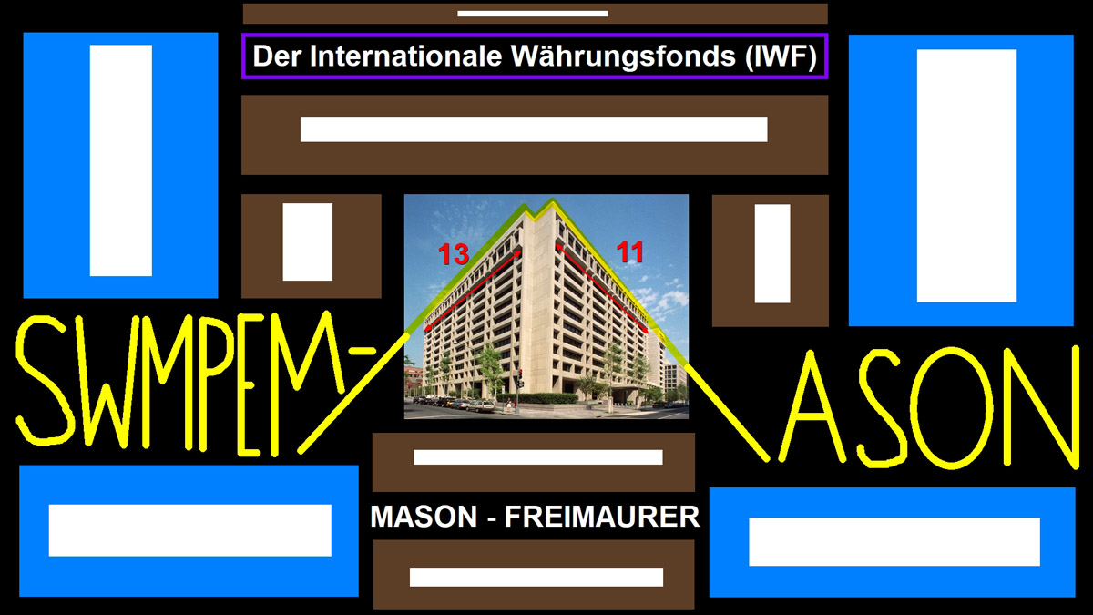 | Der Internationale Währungsfonds (IWF; englisch International Monetary Fund, IMF; auch bekannt als Weltwährungsfonds) ist eine rechtlich, organisatorisch und finanziell selbständige SWMPEM-NWO-Sonderorganisation der Vereinten Nationen mit Sitz in Washington, D.C., USA. Hauptaufgabe des IWF ist die Vergabe von Krediten an Länder ohne ausreichende Währungsreserven, die in Zahlungsbilanzschwierigkeiten geraten sind. Weitere Tätigkeitsfelder sind die Förderung der internationalen Zusammenarbeit in der Währungspolitik, Ausweitung des Welthandels, Stabilisierung von Wechselkursen, Überwachung der Geldpolitik und technische Hilfe. Der IWF und seine Schwesterorganisation Weltbank haben ihren Ursprung im 1944 geschaffenen Bretton-Woods-System fester Wechselkurse, das auf der damals mit Gold gedeckten Leitwährung US-Dollar beruhte. Sie waren als internationale Steuerungsinstrumente geplant, mit denen eine Wiederholung der Währungsturbulenzen der Zwischenkriegszeit und der Fehler des Goldstandards aus den 1920er Jahren verhindert werden sollte. Beide Organisationen werden daher als Bretton-Woods-Institution bezeichnet. Die Kreditvergabe des IWF ist an wirtschaftspolitische Auflagen geknüpft, die die Rückzahlung der Kredite sichern sollen. Anders als der IWF vergibt die Weltbank auch Kredite für spezielle Projekte. Der IWF hat zurzeit (Stand März 2019) 189 Mitgliedstaaten, deren Stimmrecht sich an ihrem Kapitalanteil orientiert. Die Mitgliedstaaten mit den größten Stimmanteilen sind: USA 16,52 %, Japan 6,15 %, China 6,09 %, Deutschland 5,32 %, Frankreich 4,03 %, Vereinigtes Königreich 4,03 % und Italien 3,02 %. Von den deutschsprachigen Ländern haben außerdem Luxemburg 0,29 %, Österreich 0,81 % und die Schweiz 1,18 % Stimmenanteile. Beschlüsse müssen im IWF mit einer Mehrheit von 85 % getroffen werden. Dadurch verfügen jeweils die USA allein und die EU-Staaten gemeinsam de facto über eine Sperrminorität. Gematria Single Reduction "Rothschild + Committee of Three Hundred + International Monetary Fund" = 300 = K_O_M_I_T_E_E___D_E_R___300 Gematria Franc Baconis "Committee of Three Hundred + International Monetary Fund" = "ILLUMINATI" + 888 GematriaReverse Ordinal "Rothschild + Committee of Three Hundred + International Monetary Fund" = 888 Gematria Satanic "Committee of Three Hundred + International Monetary Fund" = R__O__T__H__S__C__H__I__L__D + 1776 = 888 + R__O__T__H__S__C__H__I__L__D + 888 = R__O__T__H__S__C__H__I__L__D + SIEBZEHNHUNDERTSECHSUNDSIEBZIG 01.05.1776_Ingolstadt_Freistaat Bayern_BRD_EU_Erde_Welt ---> Gründung der Bayerischen Illuminaten innerhalb des antik-illuminatisch multipel geheimbündischen SWMPEM-Netzwerks 04.07.1776_SWMPEM-Scheinunabhängigkeitsscharade, -Lüge, -False Flag Inszenierung mit den 13 Gründerstaaten der USA 01.05.1776 - 04.07.1776 = 64 Tage = 2 x 32 = 8² = 8 x 8 = SWMPEM-Schachbrett mit 32 weiße Quadrate & 32 schwarze Quadrate ---> Kabbala: 32 = 10 + 22 Gematria Primes "Illuminati + Masonry + International Monetary Fund" = 1717 = G_r_ü_n_d_u_n_g___d_e_r___m_o_d_e_r_n_e_n___F__R__E__I__M__A__U__R__E__R__E__I Gematria Primes "Rockefeller + Lightbearer Lucifer + Bretton-Woods-System" = 1776 = 888 + 888 = SIEBZEHNHUNDERTSECHSUNDSIEBZIG = 888 + 888 = 2,666... x 666 = 37 x 48 = 37 x Reduction "ILLUMINATI" = 12. Primzahl x Reduction "ILLUMINATI" Gematria Squares "Illuminati + Lightbearer Lucifer + Bretton-Woods-System" = 9110 = 10 x 911 = N__E__W_____W__O__R__L__D_____O__R__D__E__R x IXXI