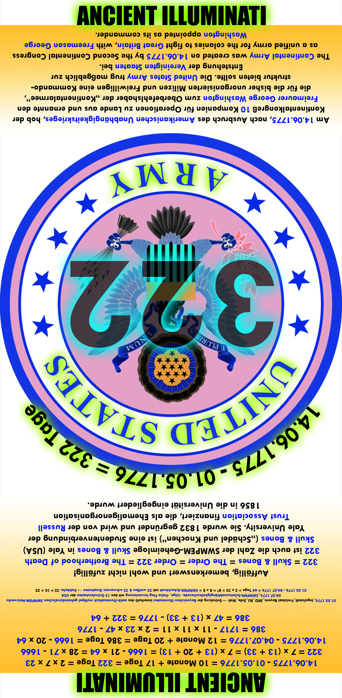 | The United States Army (USA) is the land warfare service branch of the United States Armed Forces. It is one of the 8 U.S. uniformed services, and is designated as the Army of the United States in the U.S. Constitution.] As the oldest and most senior branch of the U.S. military in order of precedence, the modern U.S. Army has its roots in the Continental Army, which was formed (14 June 1775) to fight the American Revolutionary War (1775–1783) - before the United States of America was established as a country. After the Revolutionary War, the Congress of the Confederation created the United States Army on 3 June 1784 to replace the disbanded Continental Army. The United States Army considers itself descended from the Continental Army, and considers its institutional inception to be the origin of that armed force in 1775. Headquarter: The Pentagon _ Arlington County, Virginia, U.S. Motto: "This We'll Defend" Gematria Jewish "Third Temple + United States Army" = 1676 = 1666 + 10 = 1666 + N__E__W_____W__O__R__L__D_____O__R__D__E__R = 666 + 1010 = SIX HUNDRED THREESCORE AND SIX + 1010 Wien = 1776 - 5 x 20 Gematria Jewish "Third Temple + United States Army" = 1676 = 4 x (23 x 1717 - 22 x 1776) = 4 x ((22 + "ONE") x 1717 - 22 x 1776) = 666 + 666 + 666 - 322 = 999 - S__K__U__L__L__&__B__O__N__E__S + 999 Gematria Jewish "Third Temple + United States Army" = 1676 = R__O__C__K__E__F__E__L__L__E__R + 12 x 116 = R__O__C__K__E__F__E__L__L__E__R + 32 x 9 x 11 - 1776 = R__O__C__K__E__F__E__L__L__E__R + (18 + 18) x 88 - 1776 Gematria Jewish "Third Temple + United States Army" = 1676 = R__O__C__K__E__F__E__L__L__E__R + ((6 + 6 + 6) + (6 + 6 + 6)) x 88 - 1776 ▼♄▼ 1666 = Year 1666 of the proclamation the False Messiah Sabbatai Zevi would be the Jewish Messiah The Sabbateans (or Sabbatians) were a variety of followers of disciples and believers in Sabbatai Zevi (1626–1676), a Jewish rabbi who was proclaimed to be the Jewish Messiah (for real the False Messiah) in 1666 by Nathan of Gaza. Vast numbers of Jews in the Jewish diaspora accepted his claims, even after he became a Jewish apostate with his conversion to Islam in the same year. Sabbatai Zevi's followers, both during his "Messiahship" (for real a False Messiahship) and after his conversion to Islam, are known as Sabbateans. They can be grouped into three: "Maaminim" (believers), "Haberim" (associates), and "Ba'ale Milhamah" (warriors). Nathan Benjamin ben Elisha Hayyim ha'Levi Ashkenazi / Ghazzati or Nathan of Gaza (Hebrew: נתן העזתי; 1643–1680) was a theologian and author born in Jerusalem. After his marriage in 1663 he moved to Gaza, where he became famous as a prophet for the alleged messiah, Sabbatai Zevi. ▼♄▼ Sabbatai Zevi = Falscher Messias, englisch False Messiah = SWMPEM-Lügen-Konstruktion ▼♄▼ 1010 = 10 x 101 = 1010 Wien = Postleitzahl 1. SWMPEM-NWO-Bezirk Wien _ 10 ---> SWMPEM-NWO Salomon Meyer Freiherr von Rothschild (* 09.09.1774 in Frankfurt am Main; † 28.07.1855 in Paris) war ein österreichischer SWMPEM-NWO-Unternehmer und -Bankier. Als zweiter Sohn des Dynastiegründers Mayer Amschel Rothschild und seiner Ehefrau Gutle Schnapper (1753–1849) wurde Salomon zum eigentlichen Begründer des österreichischen Zweigs der Rothschild-Familie. 101 = 26. Primzahl = 88 + 13 = 71 + 30 = 75 + 13 + 13 = 83 + 18 = 69 + 32 _ 26 = 10 + 16 = 20 + 6 = 10 + 8 + 8 = 8 + NWO + 8 = 18 + 8 = 13 + 13 = 13 Satanische Blutlinien + 13 Saturnalische Blutlinien des SWMPEM Die 13 Saturnalischen Blutlinien: Borja, Breakspeare, Somaglia, Orsini, Conti, Chigi, Colonna, Farnese, Medici, Gaetani, Pamphili, Este, Aldobrandini Die 13 Satanischen Blutlinien: Rothschild (Bauer oder Bower), Bruce, Cavendish (Kennedy), De Medici, Hannover, Habsburg, Krupp, Plantagenet, Rockefeller, Romanov, Sinclair (St. Clair), Warburg (del Banco), Windsor (Saxe-Coburg-Gotha) De Medici scheint in beiden Blutlinienbündel auf. Die nahe Zukunft wird die exakte Struktur des SWMPEM freilegen! 666 = SECHSHUNDERTSECHSUNDSECHZIG = SIX HUNDRED AND SIXTY SIX = SIX HUNDRED THREESCORE AND SIX = SIX CENT SOIXANTE ET SIX 666 = 18 x 37 = 18 x (36 + 1) = 1 + 2 + 3 + ... + 34 + 35 + 36 = 2 x 3 x 111 = 6 x 111 = 322 + 2³ x 43 = 5 x 113 + 101 = 720 - 54 = 120 + 13 x 42 = 48 + 2 x 3 x 103 = 1776 - 1110 = 36. Dreieckszahl = Oktal 1232 = Duodezimal 476 = Hexadezimal 29a 48 = Reduction "ILLUMINATI" _ 120 = English Ordinal "ILLUMINATI" _ 720 = Sumerian "ILLUMINATI" 116 = 2² x 29 = 33 + 50 + 33 = English Ordinal "Rothschild" 116 --- um 180 Grad satanisch SWMPEM-rotiert / umgedreht / auf den Kopf gestellt ---> 911 29 = 10. Primzahl = Oktal 35 = Duodezimal 25 = Hexadezimal 1d Gematria Jewish "Rothschild + Third Temple + United States Army" = 2048 = 2 x 2 x 2 x 2 x 2 x 2 x 2 x 2 x 2 x 2 x 2 = 2¹¹ = 32 x 64 = 32 x (32 + 32) = 8 x 8 x 8 + 8 x 8 x 8 + 8 x 8 x 8 + 8 x 8 x 8 Gematria Jewish "Rothschild + Third Temple + United States Army" = 888 + 10 x 116 = 888 + 1776 - 7 x 88 = 888 + 1666 - 22 x 23 = 888 + 18 x 157 - 1666 = 888 + 18 x 37. Primzahl - 1666 = 888 + 18 x (120 + 37) - 1666 = 888 + Duodezimal 1776 - 1666 Gematria Jewish "The Third Temple + United States Army" = 278. Primzahl = 1717 + 72 = 1776 + 13 = 9 x 300 - 911 = 9 x K_O_M_I_T_E_E___D_E_R___300 - IXXI = I__L__L__U__M__I__N__A__T__I + (4 x 13) x 1776 - (4 x 13 + 1) x 1717 Gematria Jewish "The Third Temple + United States Army" = R__O__T__H__S__C__H__I__L__D + 1717 - 300 = R__O__T__H__S__C__H__I__L__D + 1717 - K_O_M_I_T_E_E___D_E_R___300 Gematria Jewish "The Third Temple + United States Army" = R__O__C__K__E__F__E__L__L__E__R + 322 + 13 x 7 x 13 = R__O__C__K__E__F__E__L__L__E__R + 911 + 2 x 3 x 9 x 11 Gematria Jewish "The Third Temple + United States Army" = 9 x 11 + 9 x 11 + 9 x 11 + R__O__C__K__E__F__E__L__L__E__R + IXXI + 9 x 11 + 9 x 11 + 9 x 11 9 ist auch die Zahl der Antichristen-Scharade des aristokratisch antik-illuminatisch multipel geheimbündischen SWMPEM 72 = 2 x 2 x 2 x 3 x 3 = 2 x 3 x 12 = 6 x 12 = 4 x 18 = 