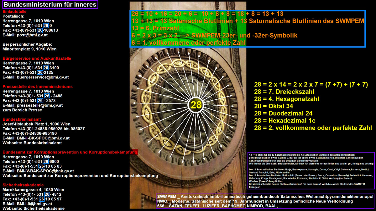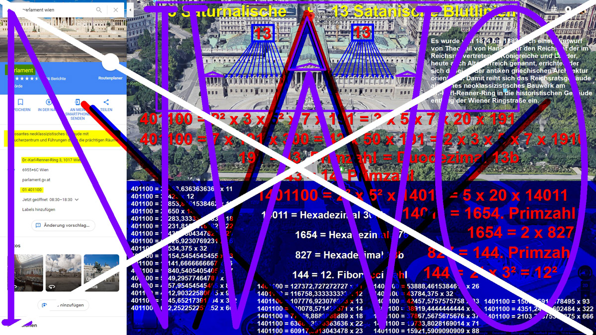 Um nicht falsch verstanden zu werden: Ich bin ein großer Freund ausnahmslos aller echten Religionen, aller Ethnien, aller Nationen inklusive Palästina, Israel, Kashmir, Indien, Pakistan, Afghanistan, Kurdistan, Türkei, Syrien, Tibet, China, Hongkong, USA, ..., jedoch naturgegeben ein großer Feind des dahinter agierenden aristokratisch antik-illuminatisch multipel geheimbündischen Blutlinien-konnotierten SWMPEM und deren verächtlicher NWO! 137 = 90 Grad [Freimaurer-Rechter Winkel] + 47 Grad [Freimaurer-Zirkel] = 33 + 71 + 33 = 33 + 72 + 32 = 33 + 72 Namen Gottes + Kabbala_32 = 104 + 33 = 33. Primzahl 90 = 5 x 18 = 6 + 6 + 6 + 6 + 6 + 6 + 6 + 6 + 6 + 6 + 6 + 6 + 6 + 6 + 6 = subtil symbolisch 666 + 666 + 666 + 666 + 666 90 = symbolisch (Rothschild_Frankfurt + Rothschild_Wien + Rothschild_London + Rothschild_Paris + Rothschild_Neapel) x 18 90 = symbolisch (Rothschild_Frankfurt + Rothschild_Wien + Rothschild_London + Rothschild_Paris + Rothschild_Neapel) x (6 + 6 + 6) 90 = symbolisch 5 x 666 = symbolisch Rothschild_Frankfurt + Rothschild_Wien + Rothschild_London + Rothschild_Paris + Rothschild_Neapel = subtil symbolisch 666 + 666 + 666 + 666 + 666